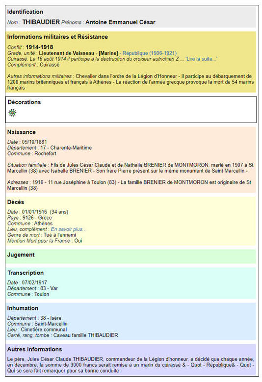 navale : "Officier courageux et dévoué, tué glorieusement à la tête