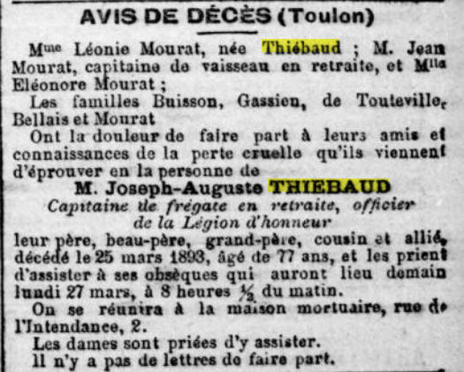 à SAINT TROPEZ (Var) - Décédé le 25 mars 1893 à TOULON (Var)