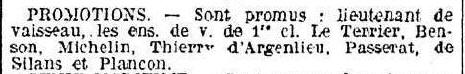 Au 1er janvier 1914, Second sur le torpilleur "LANSQUENET",