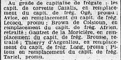 l'École Supérieure de la Marine à PARIS; promotion 1921.