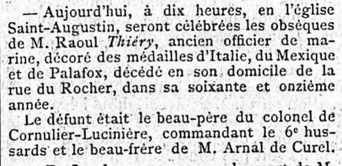 PARIS IIème (Seine) - Décédé le 3 novembre 1909 à PARIS VIIIe (Seine)