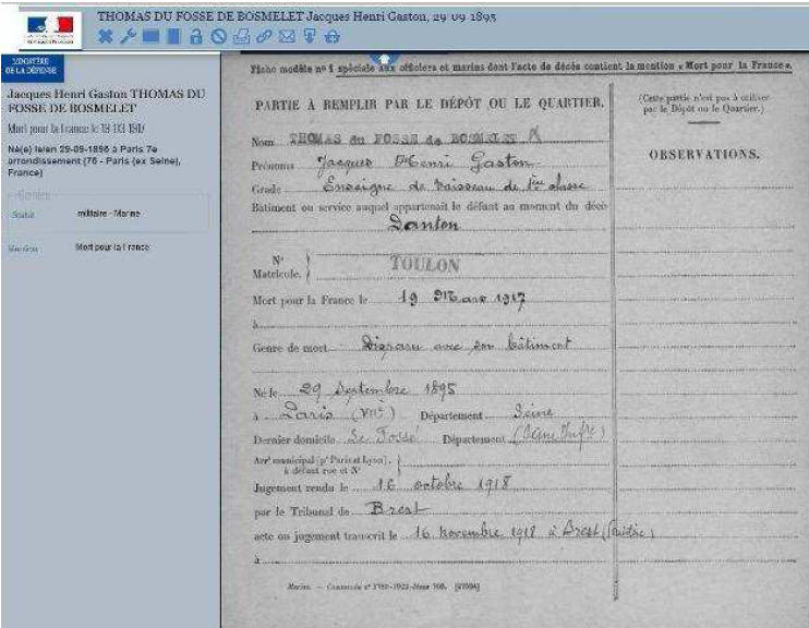 (Seine) - Décédé le 19 mars 1917 en mer, au sud de la SARDAIGNE, à