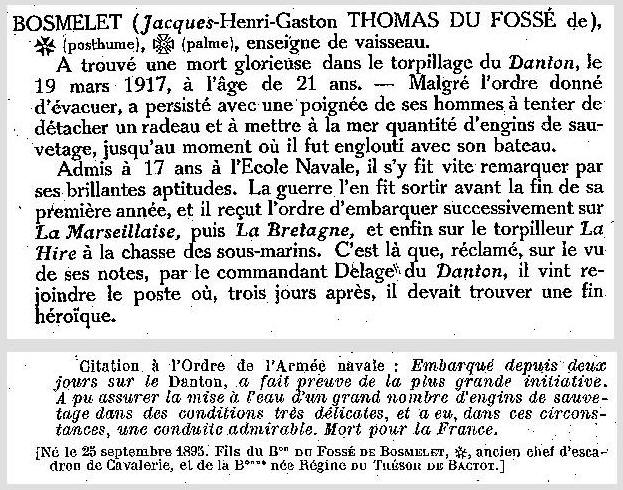 "DANTON", il disparaît en mer victime du torpillage du bâtiment.
