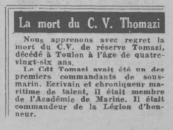 Raoul Thomazi : Médecin-chirurgien de la marine nationale. Né le 25