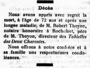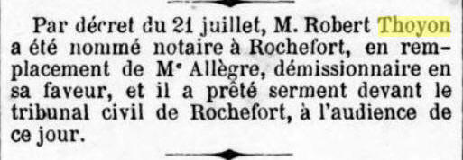 Principal clerc de notaire à ROCHEFORT, à son mariage en 1883