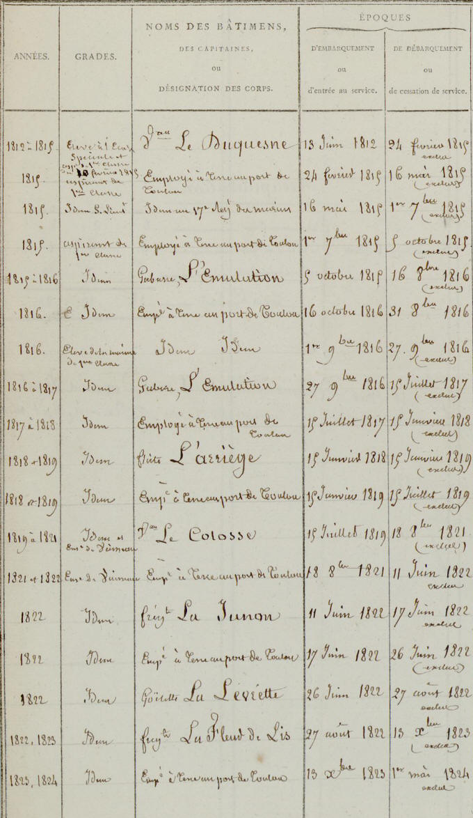 1812 à 1831 / Extrait dossier Légion d'honneur