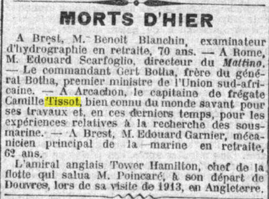 mer. Camille Tissot saisit en 1908 le bureau des longitudes d’une