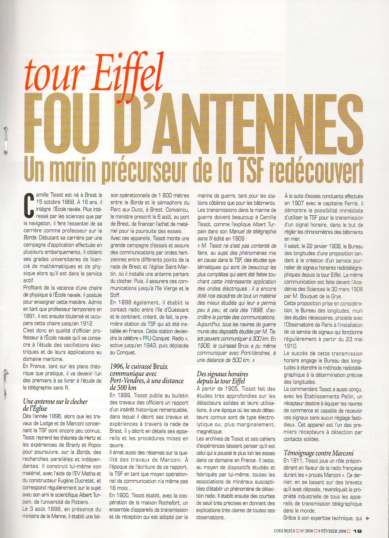 domaine. En 1898, il établit le contact radio entre l’île d’Ouessant