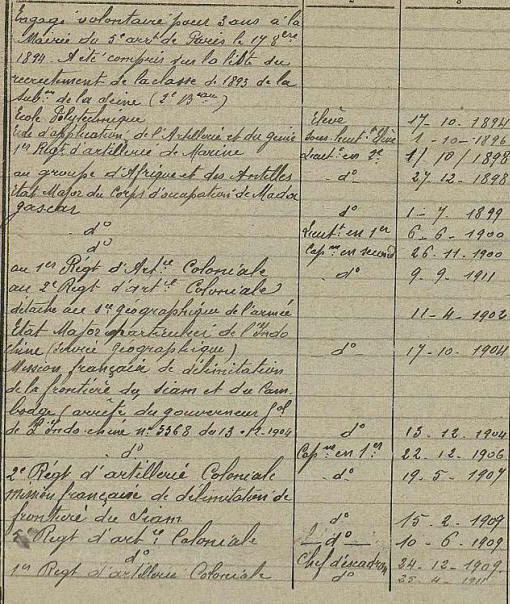 service à l'École d'application d'artillerie de FONTAINEBLEAU.