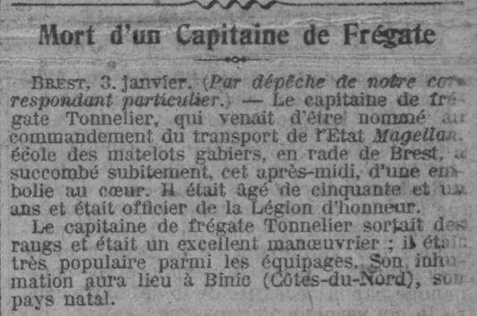 BINIC (Côtes d'Armor) - Décédé le 3 janvier 1909 à l'Hôpital
