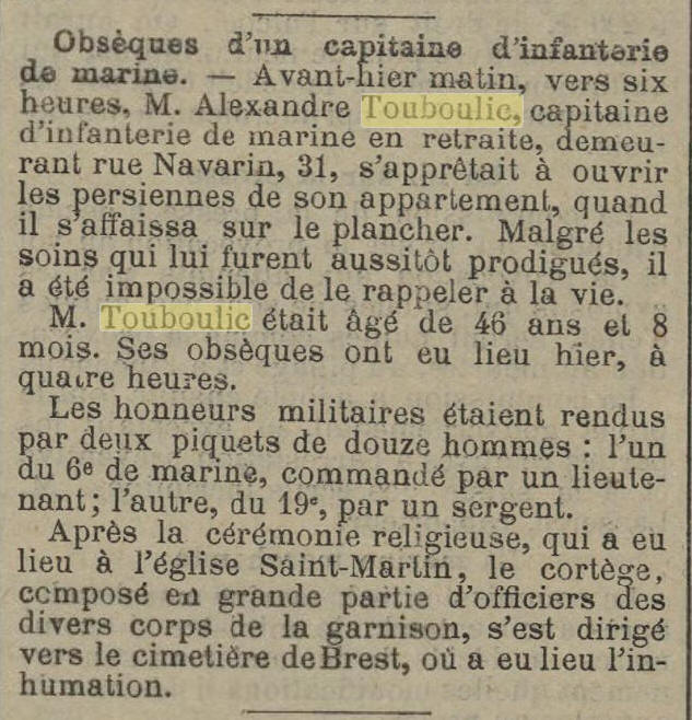 à BREST (Finistère) - Décédé le 16 juin 1892 à BREST (Finistère)