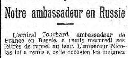 ambassadeur à Saint-Petersbourg, le vice-amiral Touchard, article