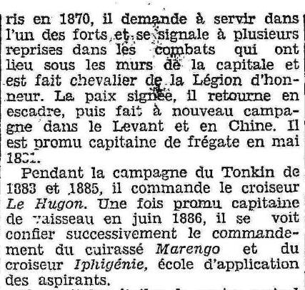 opérations du Tonkin. Le voilà en 1885 commandant du croiseur Hugon