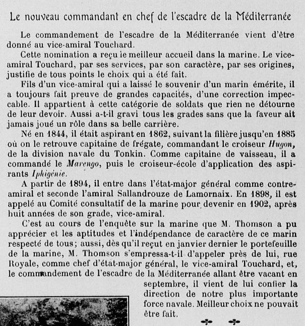 de l’amiral de La Roncière nommé Ct en chef des 13.500 marins et