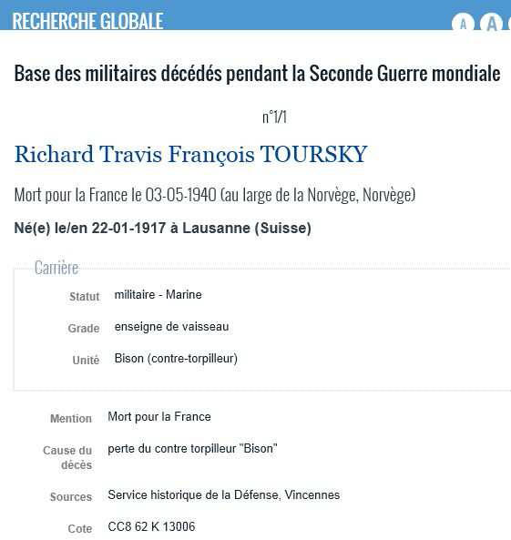 contre-torpilleur Bison coulé le 3 mai 1940.