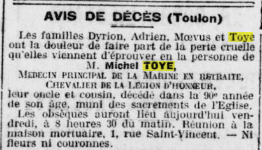 1867 : il est chirurgien résidant à l’hôpital St-Mandrier à Toulon.