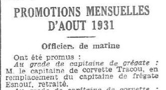 de vaisseau de 2ème classe le 5 octobre 1912, port TOULON.
