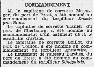 Enseigne de vaisseau de 2ème classe le 5 octobre 1912; port
