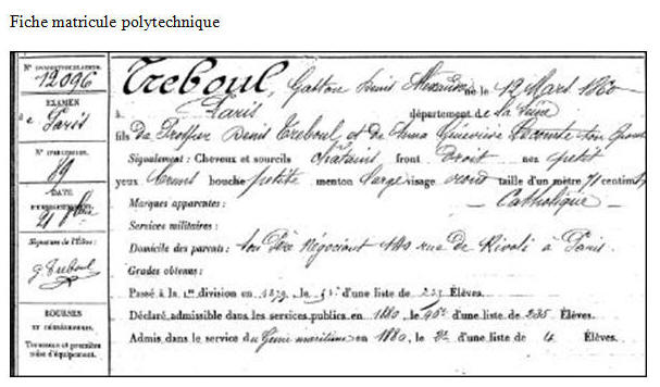 Élève de l'École polytechnique le 1er novembre 1878, opte pour le Génie