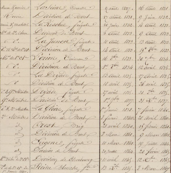 d'Honneur le 26 avril 1846 étant Maître voilier de 1ère classe.