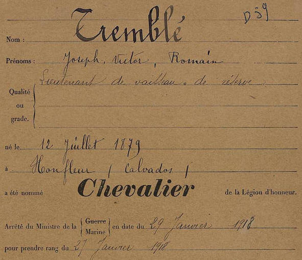 1918, Officier adjoint au Commandant la Marine à CALAIS.