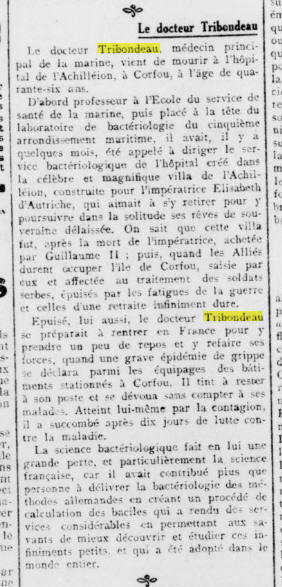 mort en service le 19 septembre 1918 à l'hôpital maritime de CORFOU,