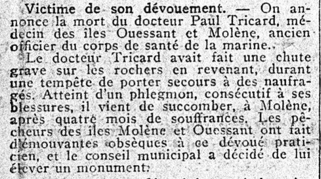 SABLÉ (Sarthe) - Décédé le 22 avril 1928 à l'Île MOLÈNE (Finistère).