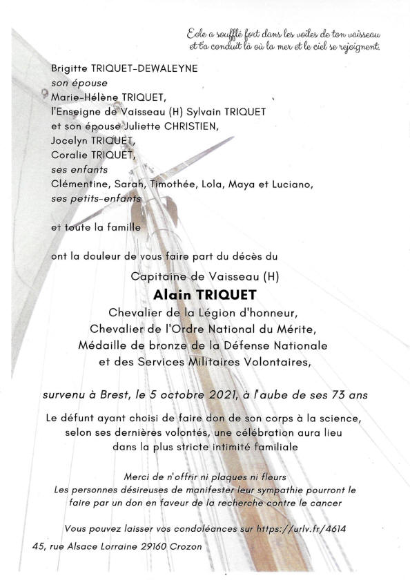 à AMIENS (Somme) - Décédé le 5 octobre 2021 à BREST (Finistère)