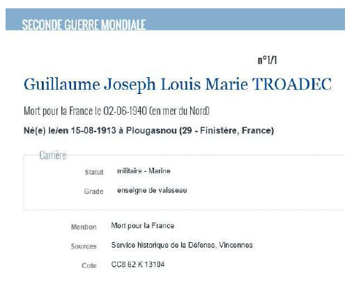 1942), l'enseigne de vaisseau Troadec a été nommé chevalier de la