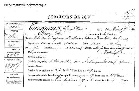 Entre à l'École polytechnique le 1er novembre 1875.