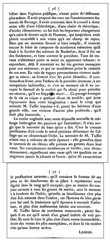 funèbre prononcé par R. Lesson. Annales maritimes vol 14 T1, 1829.