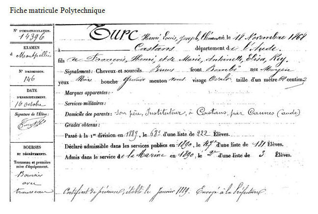 Élève de l'École polytechnique en 1888, opte pour la Marine.