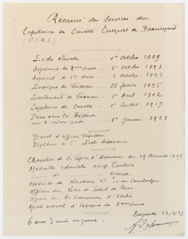 cadre de réserve le 1er janvier 1921; port TOULON.