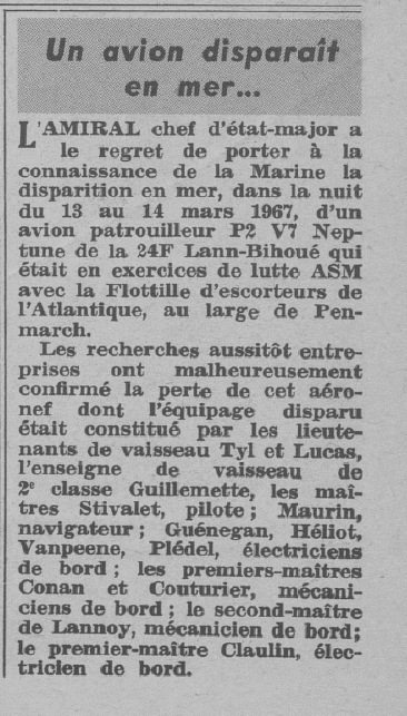 HAVRE (Seine-Maritime) - Disparu le 13 mars 1967 en Mer d'Iroise à