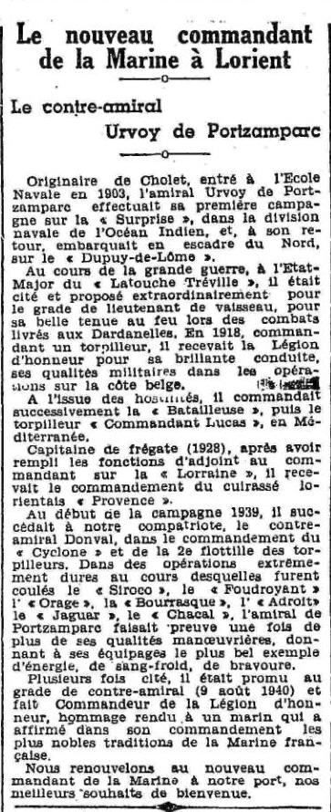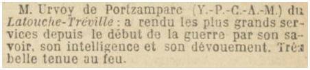 commandant URVOY de PORPZAMPARC, qui lui signale de se joindre