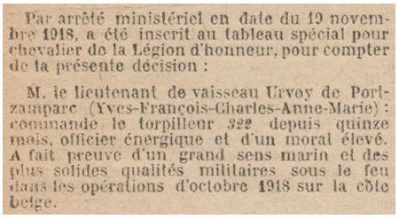 ZEEBRUGGE, qui lui vaut en mai 1918 un témoignage de satisfaction.