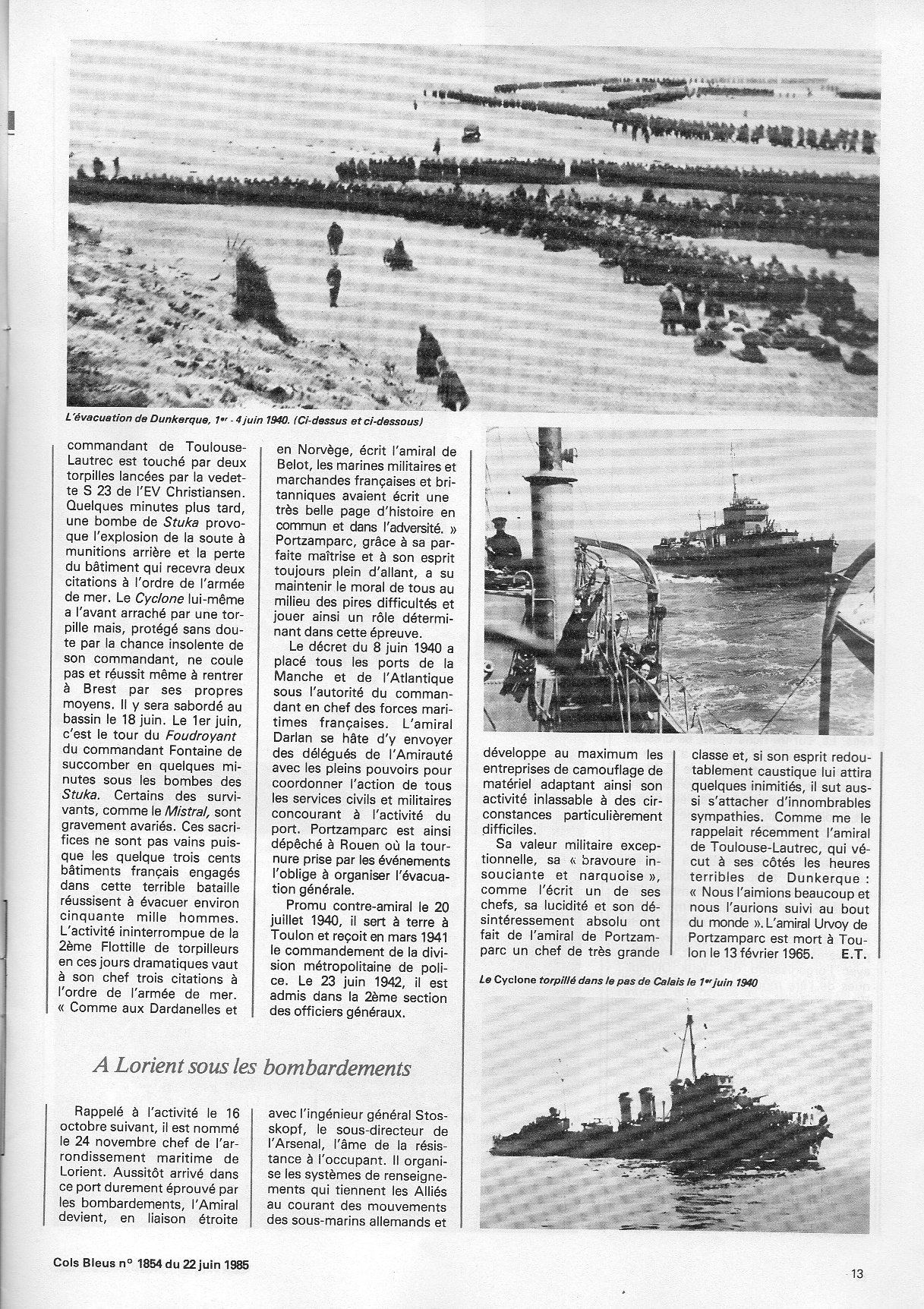 évacuer sur DOUVRES. Le lendemain une torpille arrache l'avant du