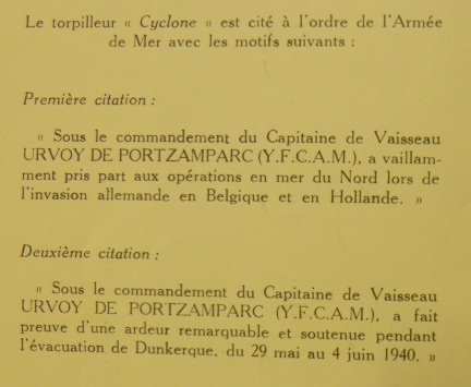 torpilleur "CYCLONE", avec lequel il s'illustre dans la lutte