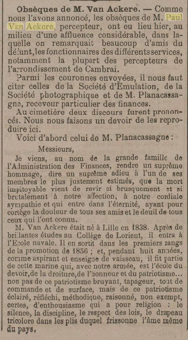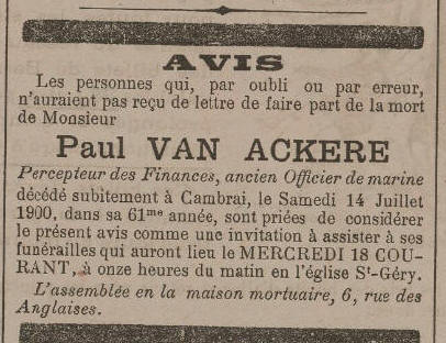 Décédé le 14 juillet 1900 à CAMBRAI (Nord).