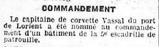 d'Honneur le 29 janvier 1918, port LORIENT.