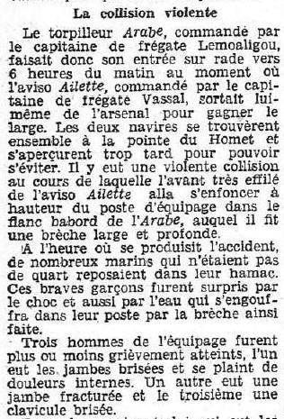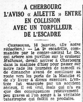 port CHERBOURG. Au 1er janvier 1908, port LORIENT.