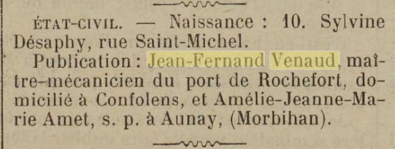 Marié à TOULON (Var) en 1905 avec Amélie Jeanne Marie AMET
