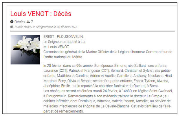 Né le 14 mai 1916 - Décédé le 20 février 2015 à PLOUGONVELIN