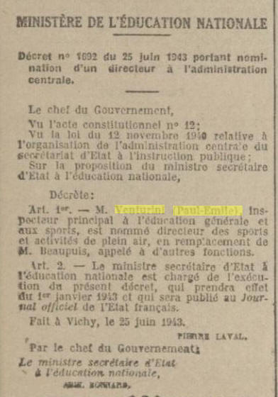 du cadre spécial le 1er novembre 1954; mêmes fonctions. Idem au 1er