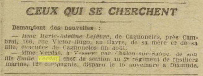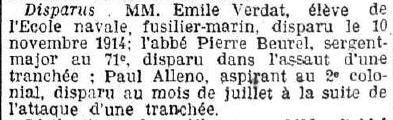 Par décision du 4 novembre 1915, l'aspirant Verdat a reçu la