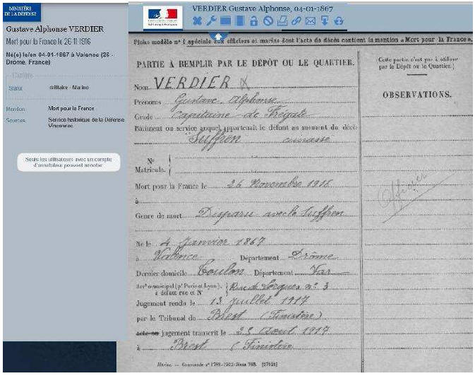 - Décédé le 26 novembre 1916 en mer, au large de LISBONNE.