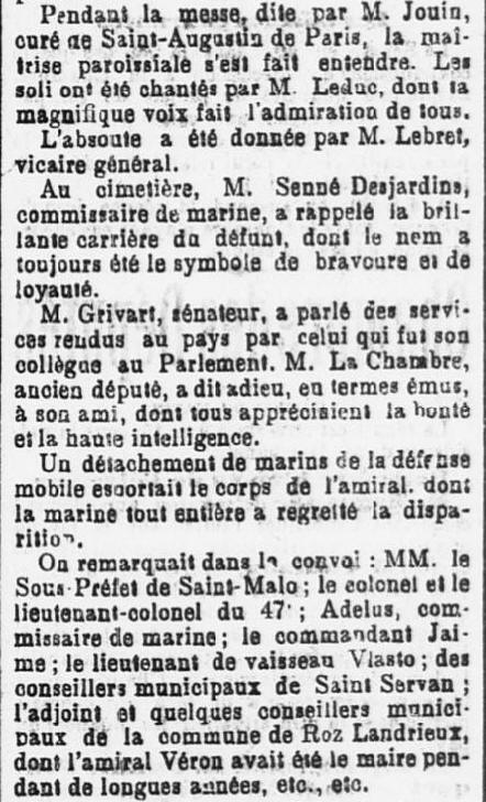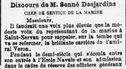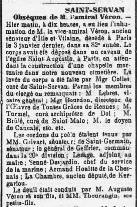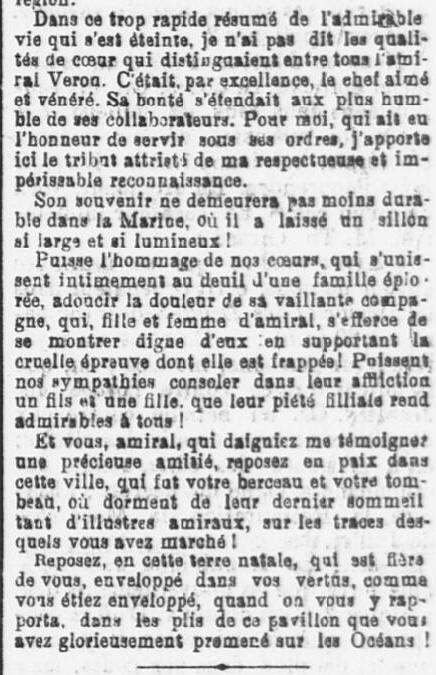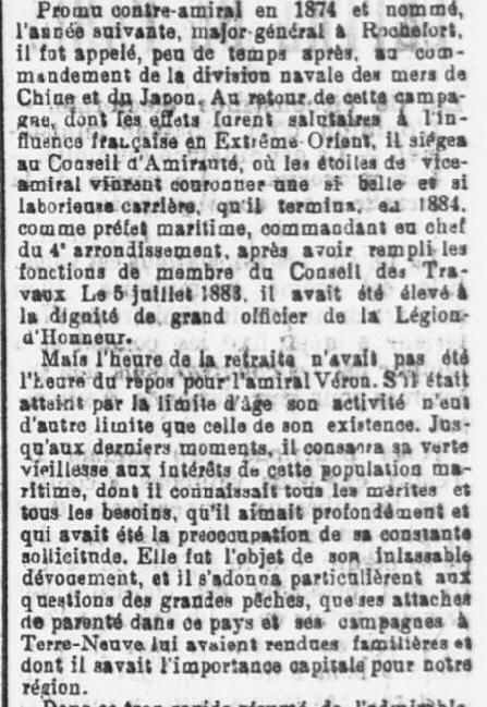 M. le vice-amiral Véron fut porté, le 21 juin 1885, par les