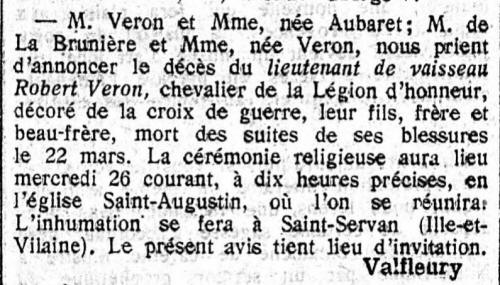 Grièvement blessé au cours d'un combat contre un sous-marin, a été