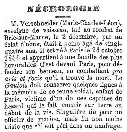 Tué le 2 décembre 1870 à BRY-sur-MARNE (Val-de-Marne).