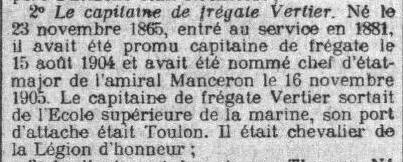 15 août 1904. Au 1er janvier 1906, sur le cuirassé "IÉNA", Chef
